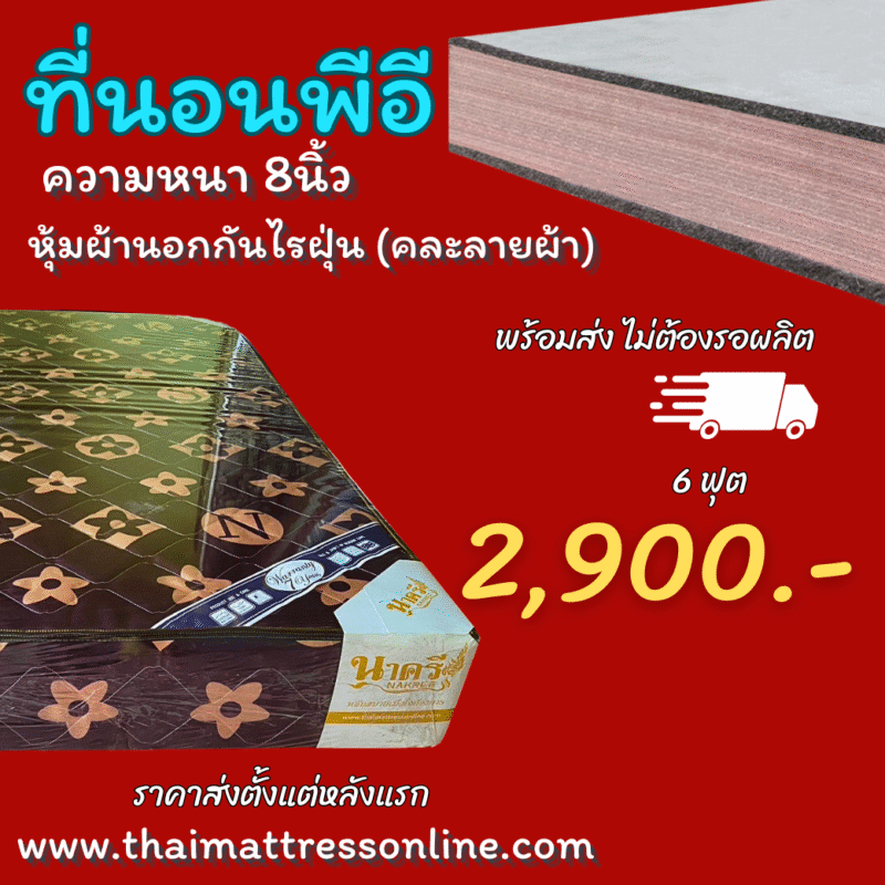 (ล้างสต็อค) ที่นอนยางพีอี ผ้ากันไรฝุ่น 6 ฟุต
