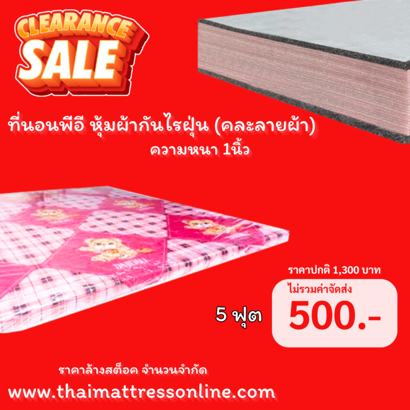 (ล้างสต็อค) ที่นอนยางพีอี ผ้าเกาหลี 5ฟุต หนา 1นิ้ว