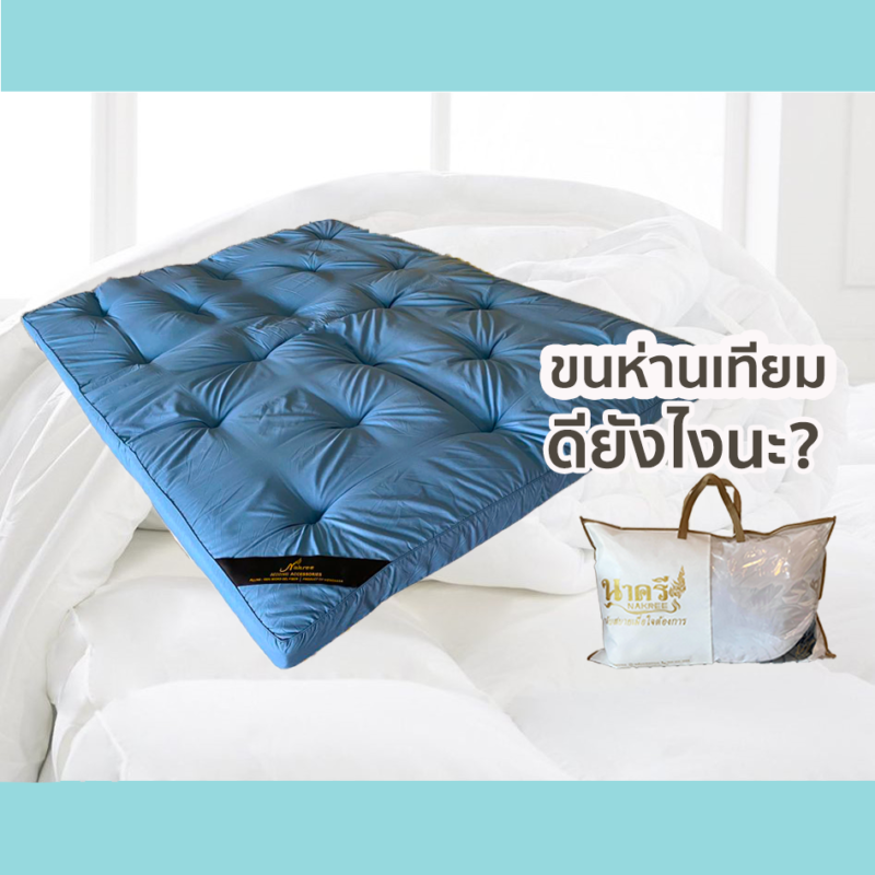 รู้อย่างนี้แล้ว อยากทดลองใช้ผลิตภัณฑ์เกรดพรีเมียมดูแล้วใช่ไหมคะ ? ทางนาครีแบรนด์ ของเราก็มีผลิตภัณฑ์หลากหลายรูปแบบที่ผลิตจากเส้นใยไมโครเจล อาทิเช่น ผ้าห่มขนห่านเทียม ที่ช่วยกระจายความเย็นและกักเก็บความอบอุ่นในขณะเดียวกัน / หมอนหนุนขนห่านเทียม และทอปเปอร์ขนห่านเทียม ที่ช่วยให้หลับสบาย ลดอาการปวดหลัง ปวดคอได้อย่างดีเยี่ยม