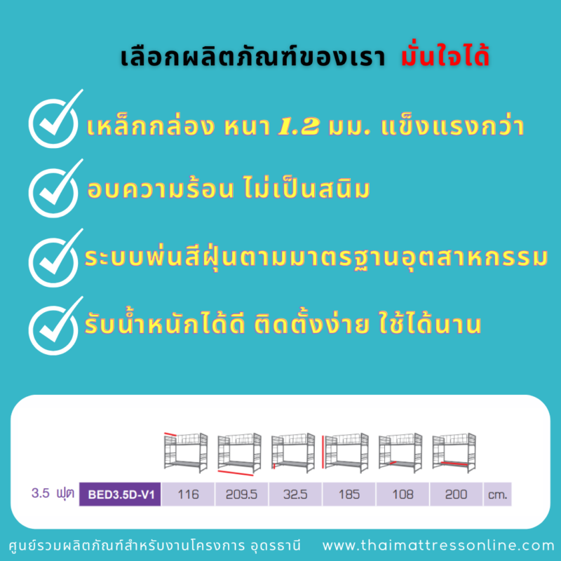 เตียงเหล็กของเราใช้เหล็ก มาตรฐาน มอก. เป็นเหล็กเต็ม