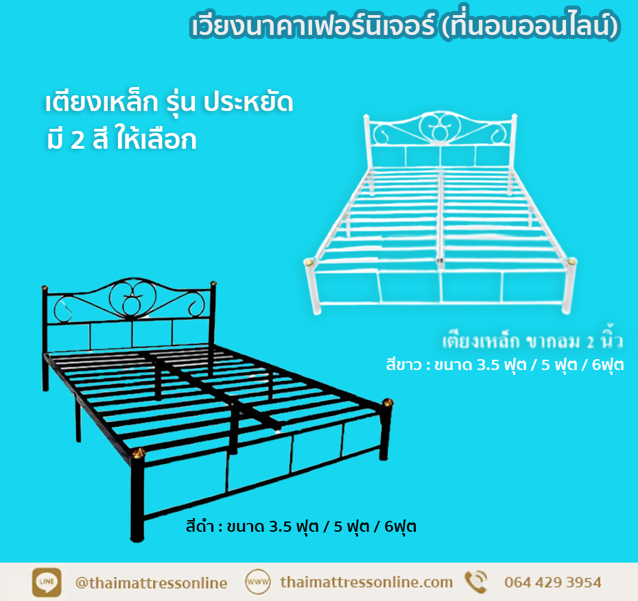 เตียงเหล็ก รุ่น ประหยัด มี 2 สีให้เลือก ขาว และ ดำ